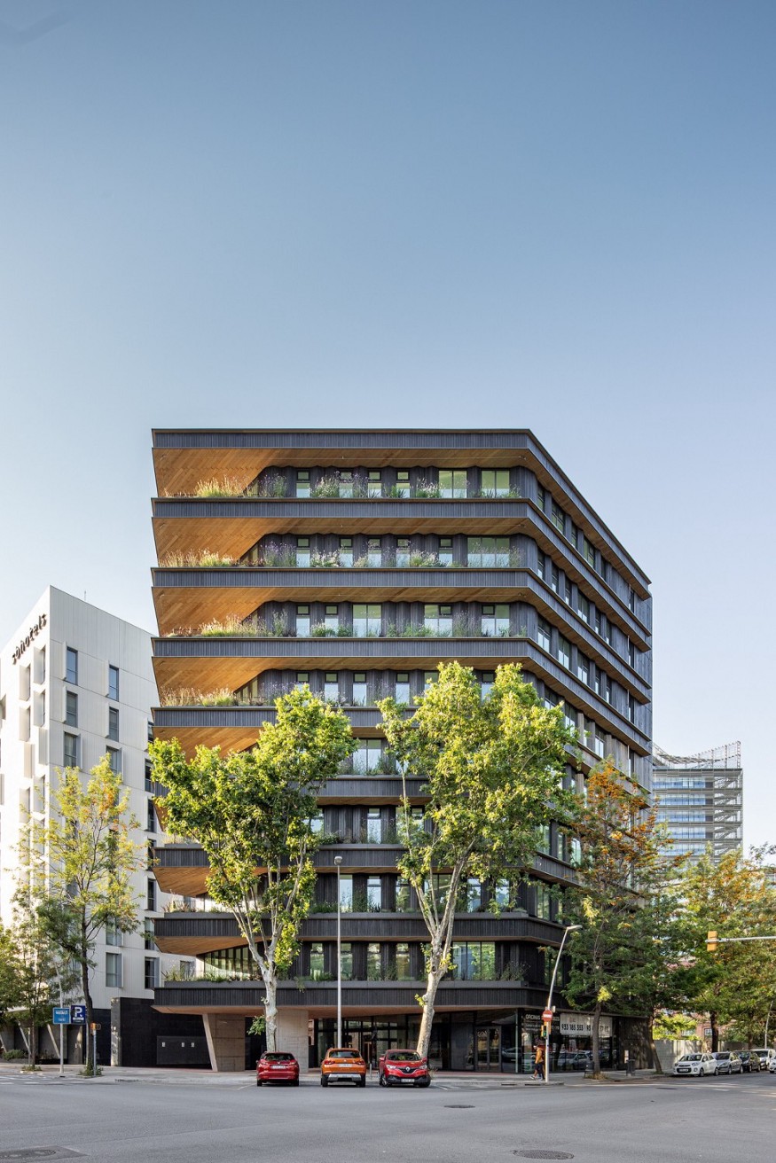 Its structural performance is highly noteworthy. Today there are constructions up to 18 levels high where a structure based on pillars and beams of CLT (Cross Laminated Timber) and Wood frame is combined for vertical partitions and closures.